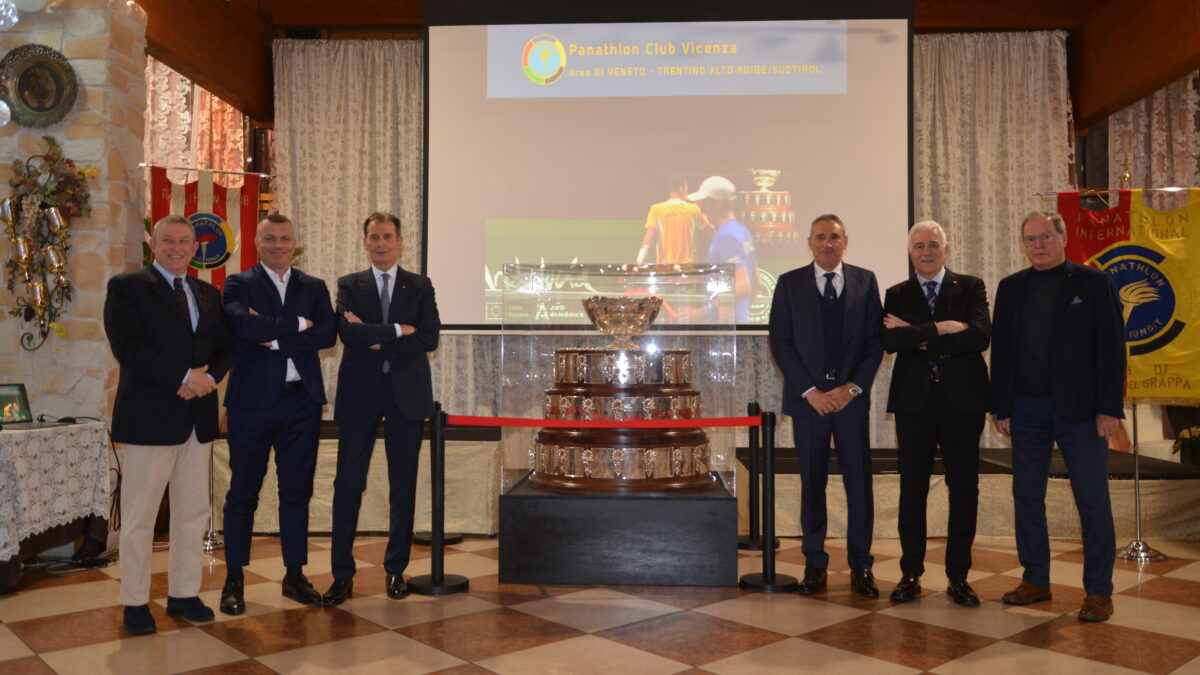 Giovedì 28 marzo 2024: un momento storico per il nostro Panathlon Vicenza che ha celebrato in anteprima assoluta per la città di Vicenza la “visita” della Coppa Davis conquistata qualche mese fa dai nostri tennisti azzurri! Una serata che ha visto protagonisti tanti Club Panathlon dell’Area 1, che hanno voluto immortalare la più famosa Insalatiera d’argento, Panathlon Club Venezia Panathlon Cittadella Panathlon Bassano del Grappa, Panathlon Club Rovigo Panathlon Treviso Panathlon Club Verona 1954 Panathlon International Club Castelfranco Veneto fino al Panathlon Chioggia. Insieme a loro anche gli amici del Lions Club e tantissimi ospiti tra i quali Marzio Innocenti, Presidente della F.I.R. Presenti anche il Governatore del Panathlon Area 1, Franco Falco e il Consigliere Internazionale, Giorgio Chinellato. Un grazie sentito agli amici e soci Gianni Milan, Vice Presidente della FITP ed Enrico Zen, Presidente del Tennis Comunali Vicenza, che hanno reso possibile questa meravigliosa iniziativa.